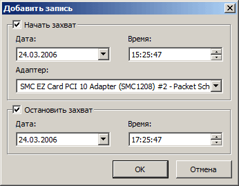 Утилита-планировщик позволяет задавать расписание сбора пакетов.